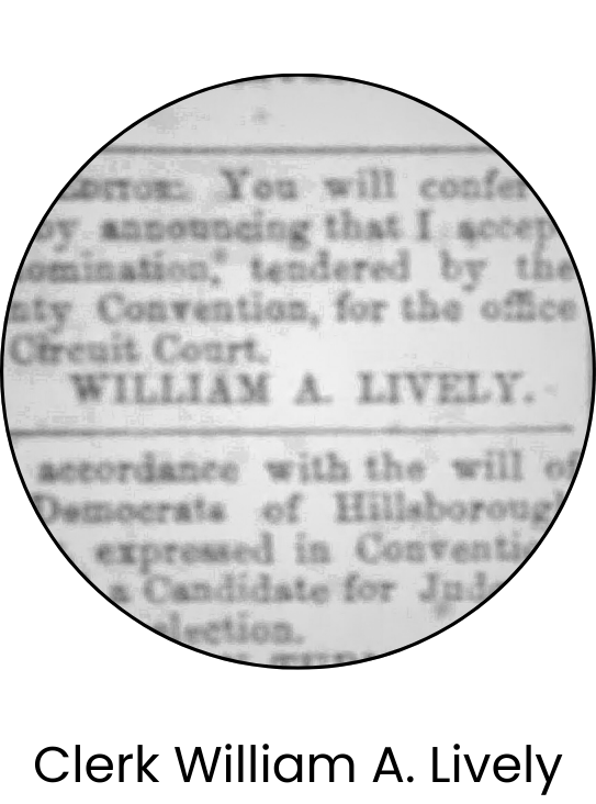 The Hillsborough County Clerk's Office has been serving the citizens of Hillsborough County since 1834. Below is a gallery of the 38 Clerks of Court that have served in this postion throughout its existence. For those we could not find images of we used their signatures. If you possibly have one of the missing headshots please contact us!